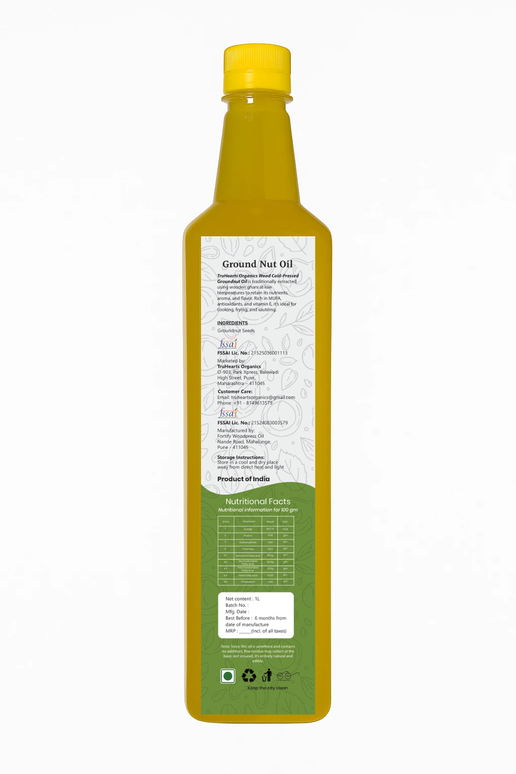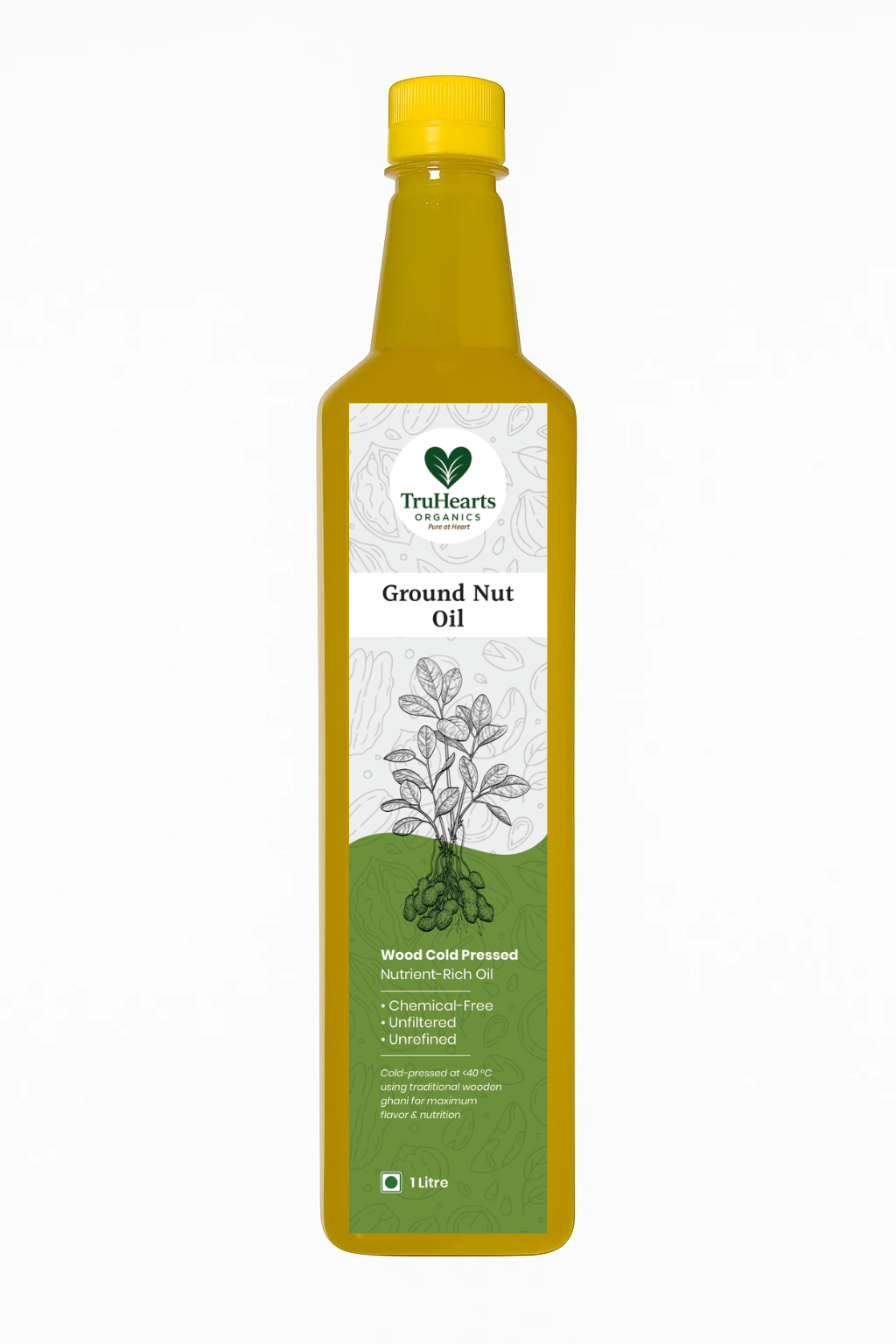 TruHearts Organics’ Wood Pressed Groundnut Oil is extracted at low temperatures using traditional wooden churners to preserve taste, nutrients, and purity. Made from premium groundnuts. No chemicals or preservatives. Available in 1L and 5L packaging. Perfect for healthy cooking.