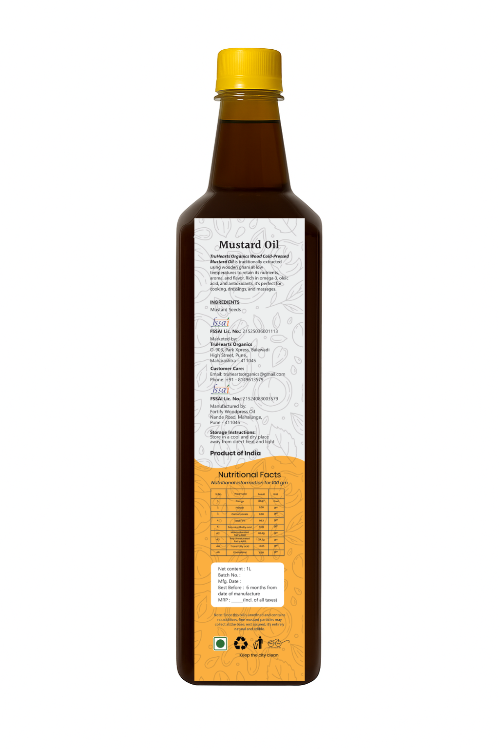 TruHearts Organics’ Wood Pressed Mustard Oil is extracted at low temperatures using traditional wooden churners to preserve taste, nutrients, and purity. Made from premium mustard seeds and available in variation of yellow or black mustard seed oil. No chemicals or preservatives. Available in 1L and 5L packaging. Perfect for healthy cooking.